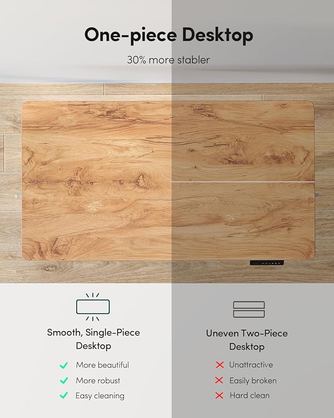 - Seamless One-Piece Design: Fezibo adjustable standing desk features a smooth, one-piece desk surface without visible seams. Unlike other models with joined panels, this seamless design offers 30% enhanced stability to provide a solid foundation for your equipment.