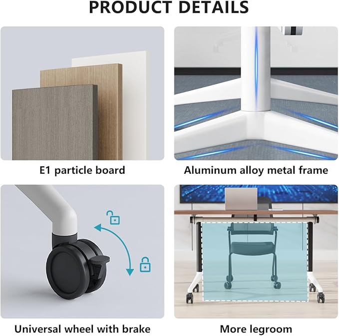 - Sturdy conference table: The metal frame of this conference table is made of aluminum alloy, with strong load-bearing capacity and will not rust after long-term use. Suitable for various occasions such as schools, commercial offices, libraries, training schools, etc