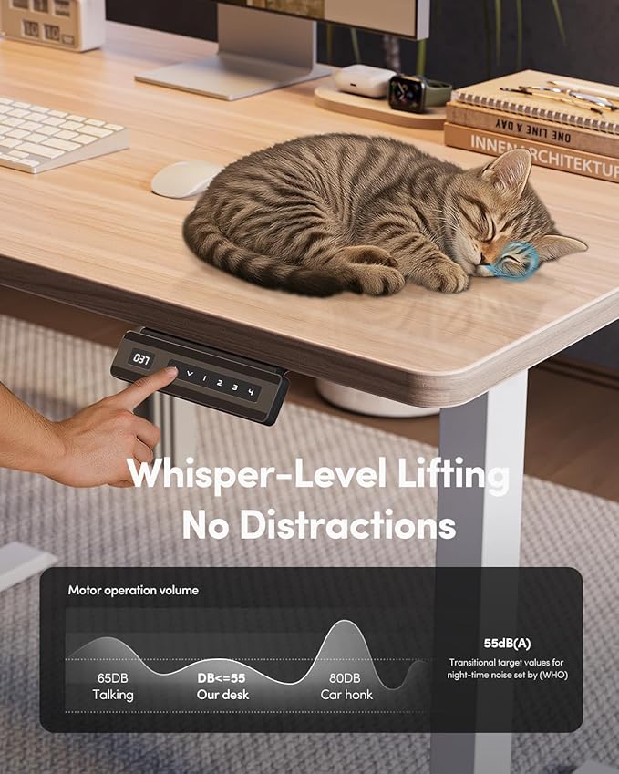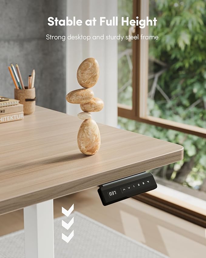 - 4 Memory Height Presets: The Fezibo Electric Standing desk features an intuitive LED controller for quiet operation. It allows you to save up to 4 custom height settings to seamlessly switch between your preferred heights, ensuring you have a focused, distraction-free workspace.