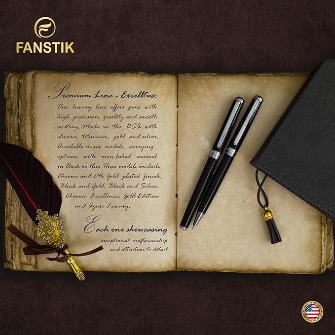 Black & Silver Luxury fountain pen (Made In USA) fancy gift set for women, Chrome Finish, Professional executive pen gift set for men (Lux fountain Black-Silver)